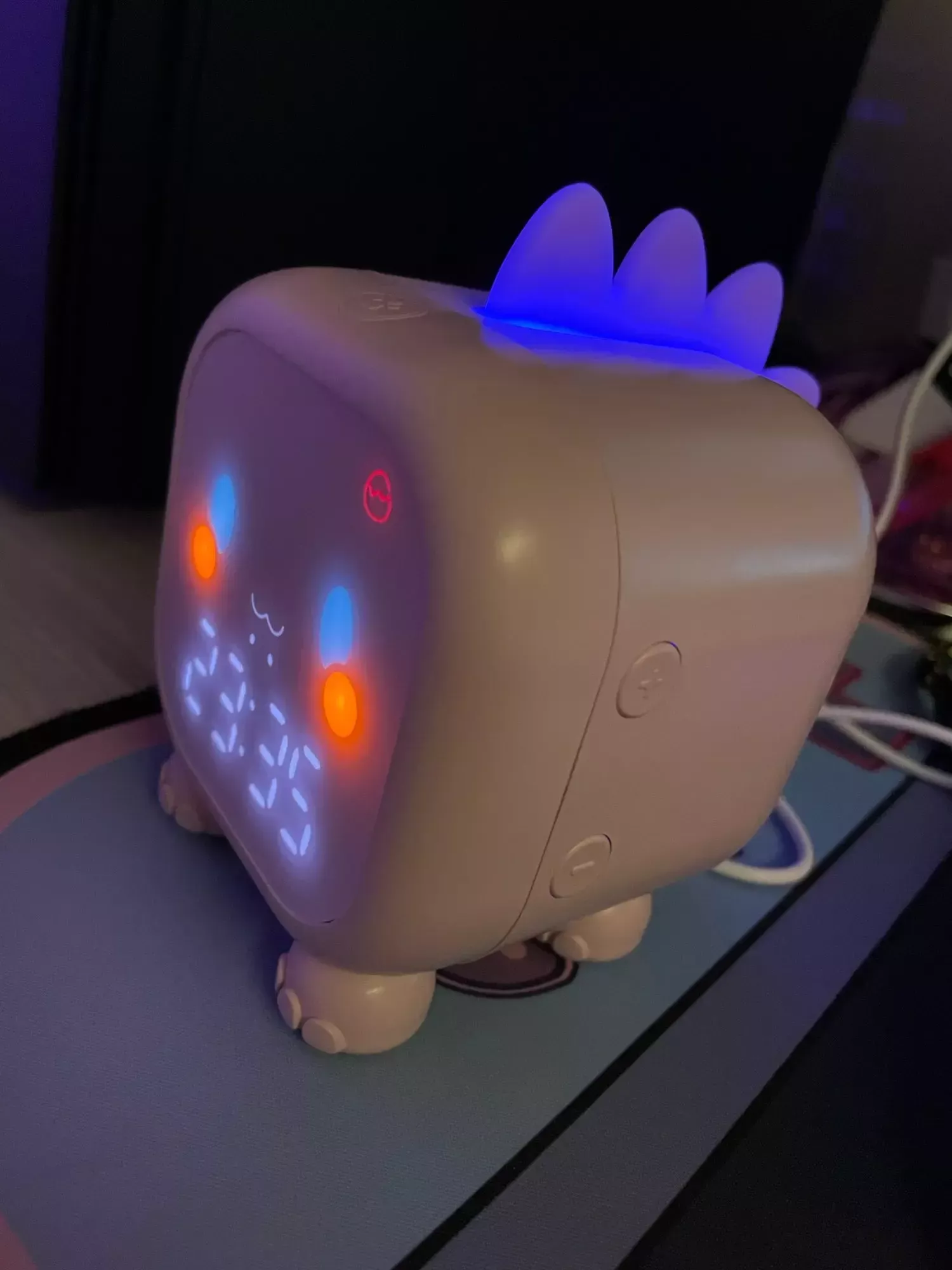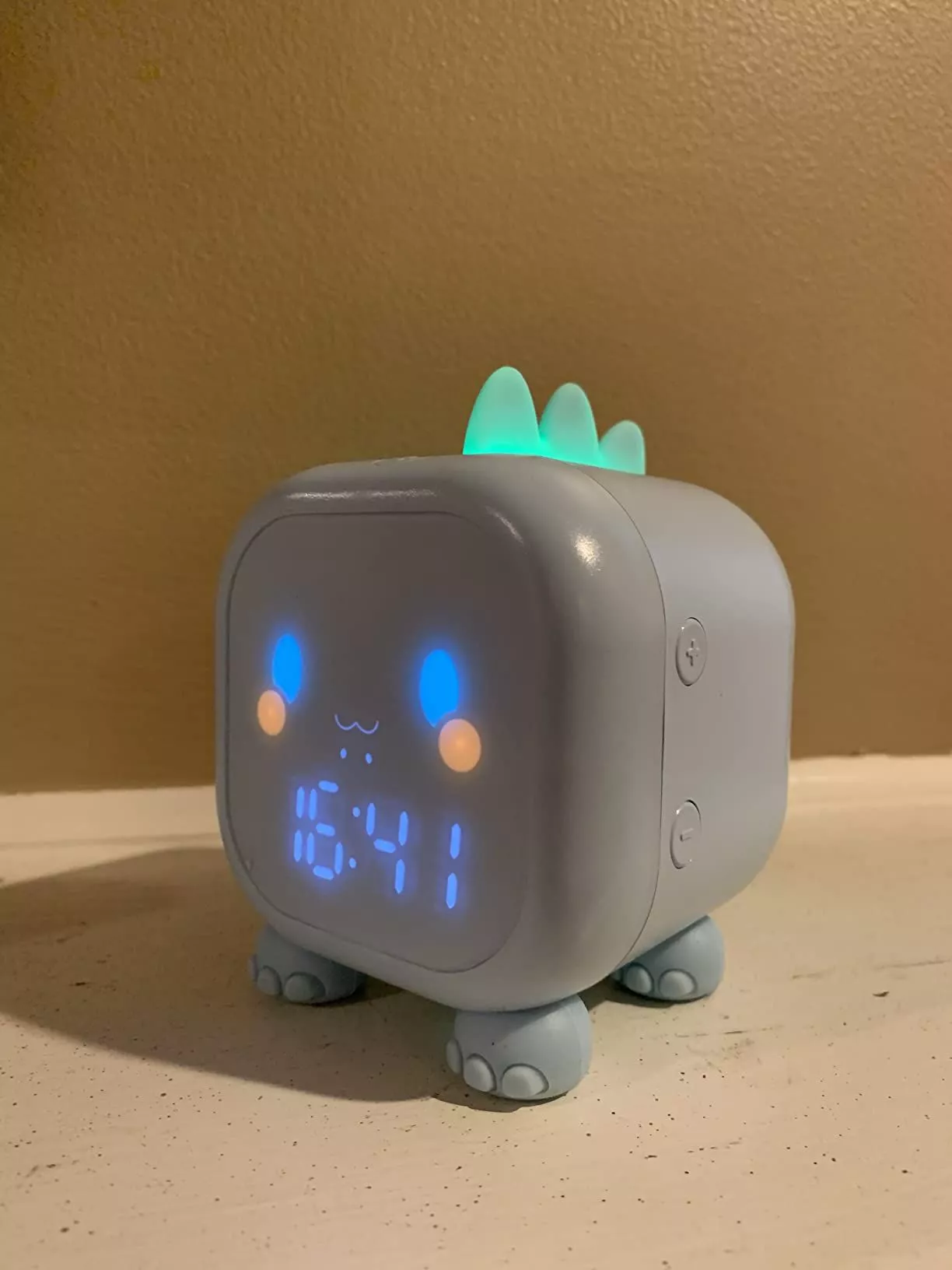 This dinosaur clock is adorable. My kids love it. Easy to set up, lights up in different colors, making a perfect night light. No issues after months of use. Highly recommend!